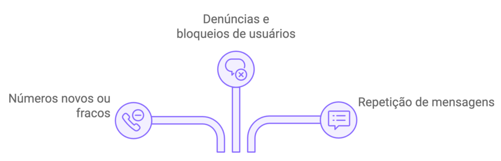 São números recém-criados, sem histórico de conversas ou interação. É como abrir uma conta nova de anúncios no Meta Ads: o sistema ainda não confia. Se você dispara a mesma mensagem pra muita gente logo de início, o WhatsApp entende que é spam.